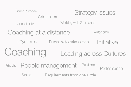 To put it another way, my key areas are strategy issues, goal identification and formulation, leadership, complexity reduction, leadership in new roles, personal leadership style, leadership in an international environment, “difficult cases” and mastery of leadership, pushing through decisions in difficult situations and mastering the demands of cross-cultural communication.